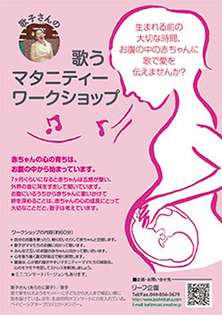 妊娠7ヶ月になると、赤ちゃんの耳はかなり聞こえている様です。オリジナルの歌集などを使って、みんなでお腹の赤ちゃんに歌いかけます。お母さんが少しリズミックに体を動かすのも赤ちゃんは喜ぶみたいです。出産はお母さんと赤ちゃんの最初の共同作業です。その前にしっかり愛を伝えてコンタクトをとっておきましょう!ワーク後は、座談会。楽しい会話に心が軽くなります。 ▼詳しくは下記のバナーをクリックしてご覧ください。(PDF)