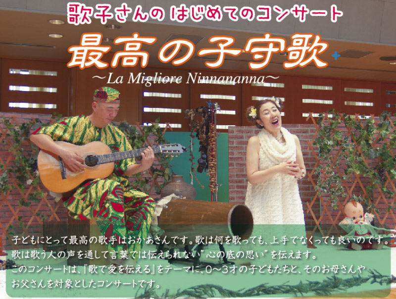 日本人の心に代々受け継がれてきた思いを、歌でこどもたちへとつないでいく。一緒に歌いながら親子の絆が深まる、ゆったりとした時間をお届けします。