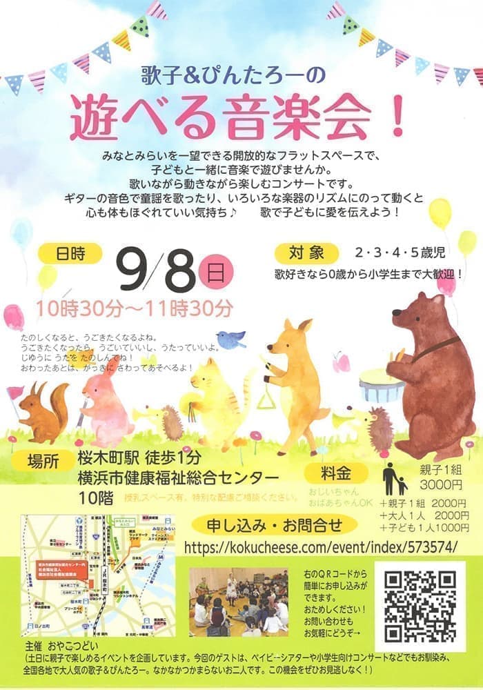 今回は、楽しいワークショップです。一緒に歌って踊って楽器で遊びましょう!