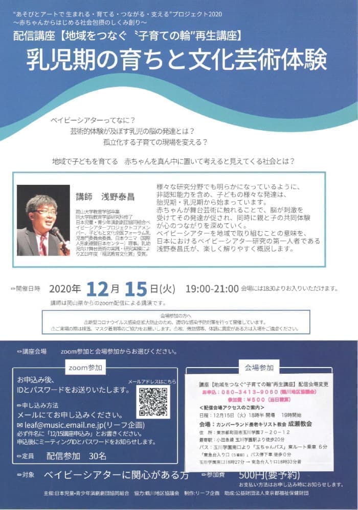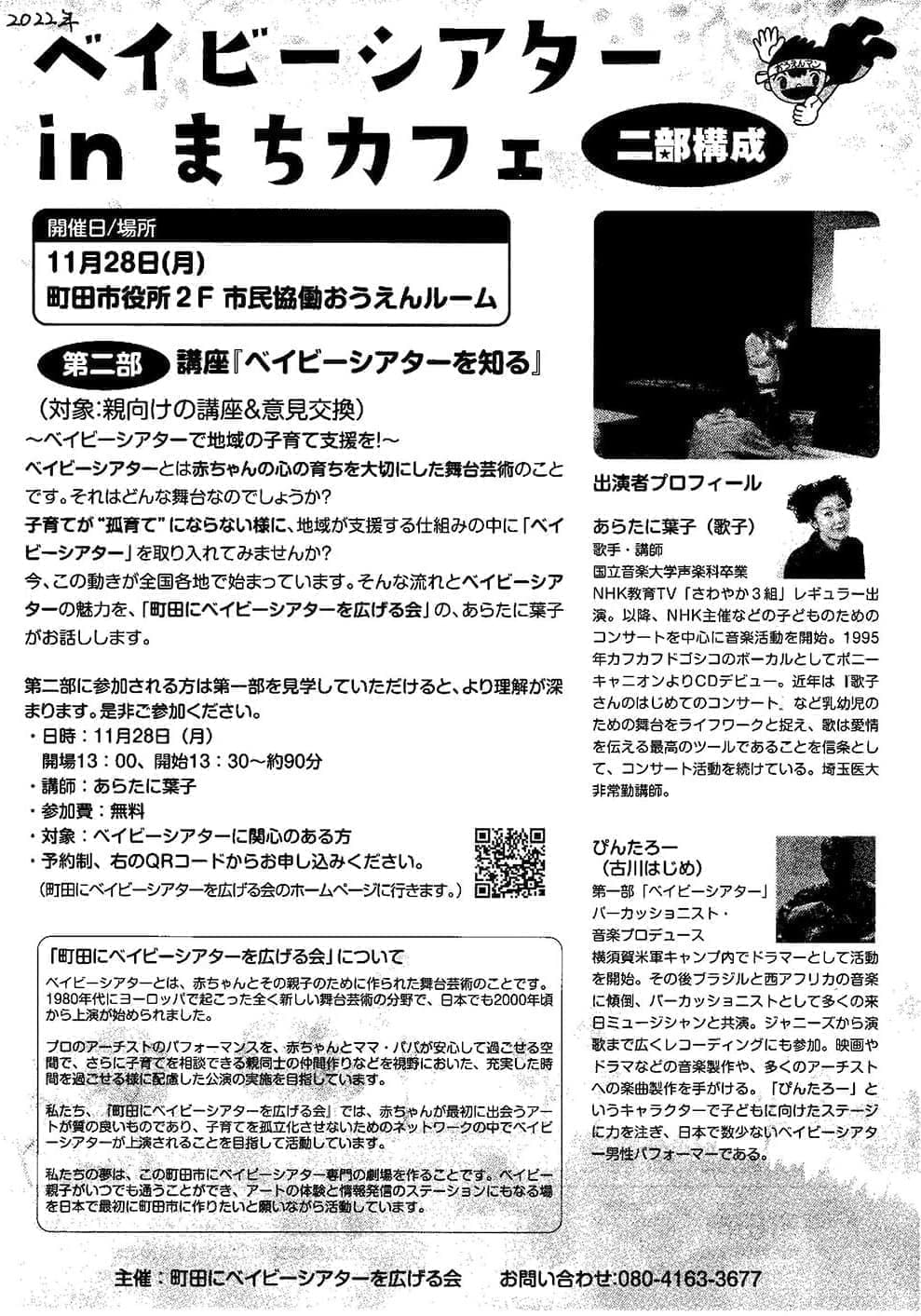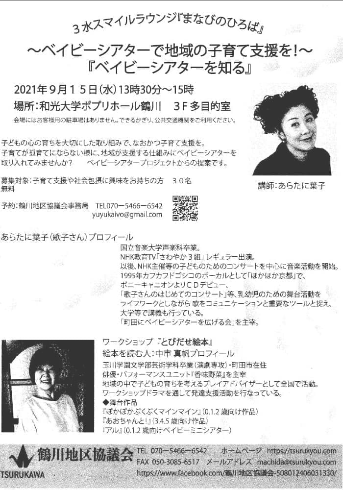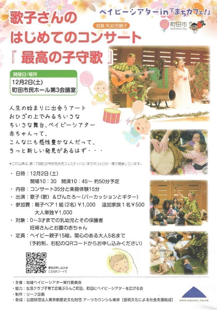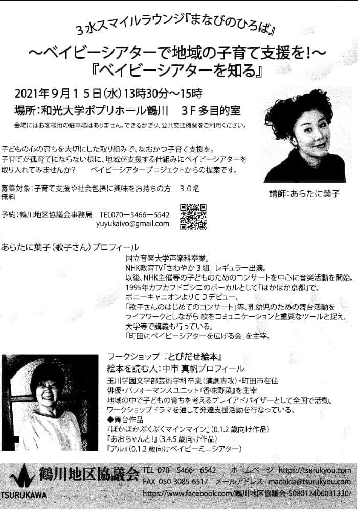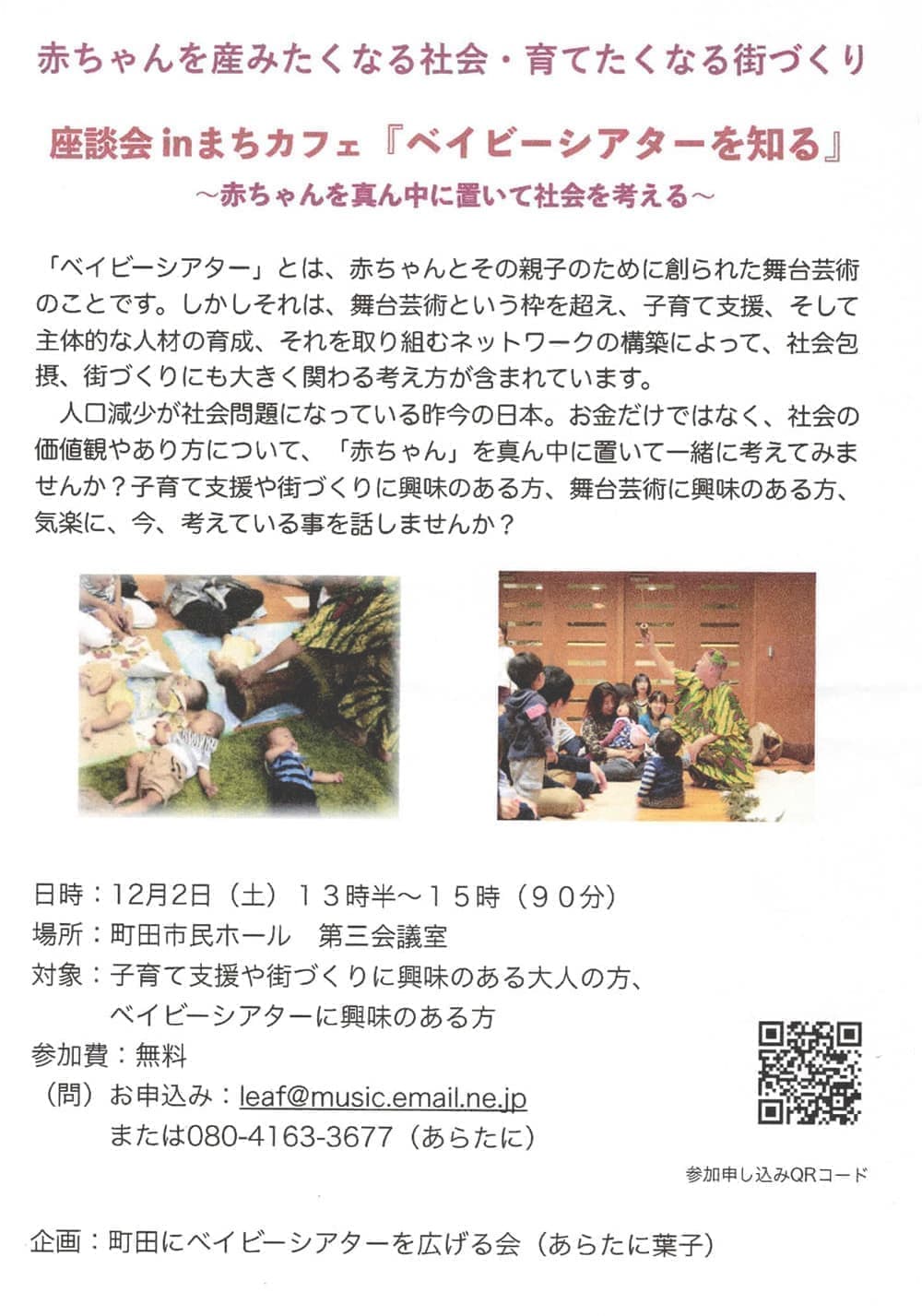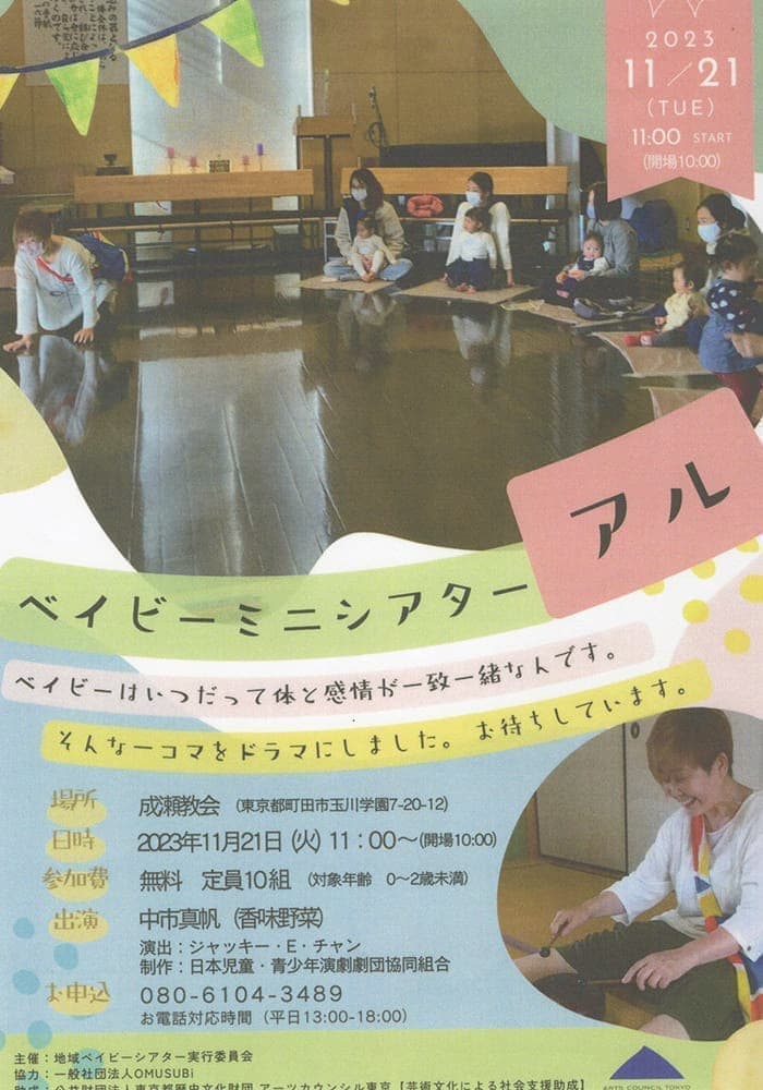 私たち、『町田にベイビーシアターを広げる会』では、赤ちゃんが最初に出会うアートが質の良いものであり、子育てを孤立化させないためのネットワークの中でベイビーシアターが上演されることを目指して活動しています。