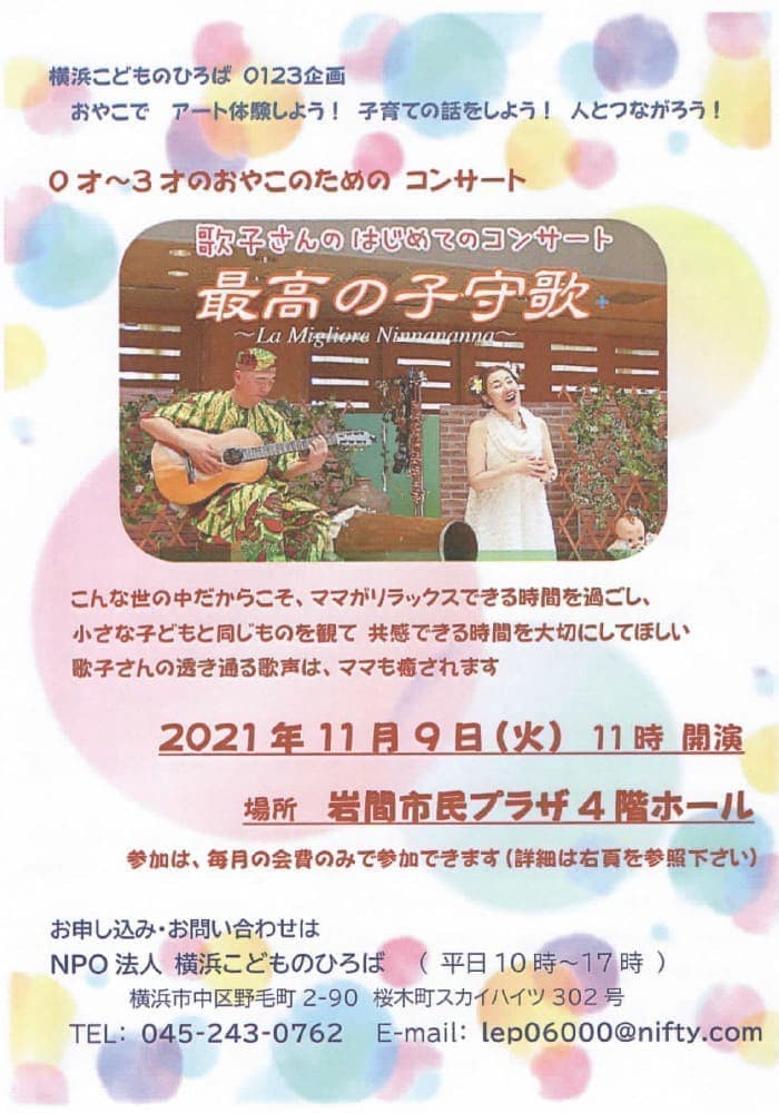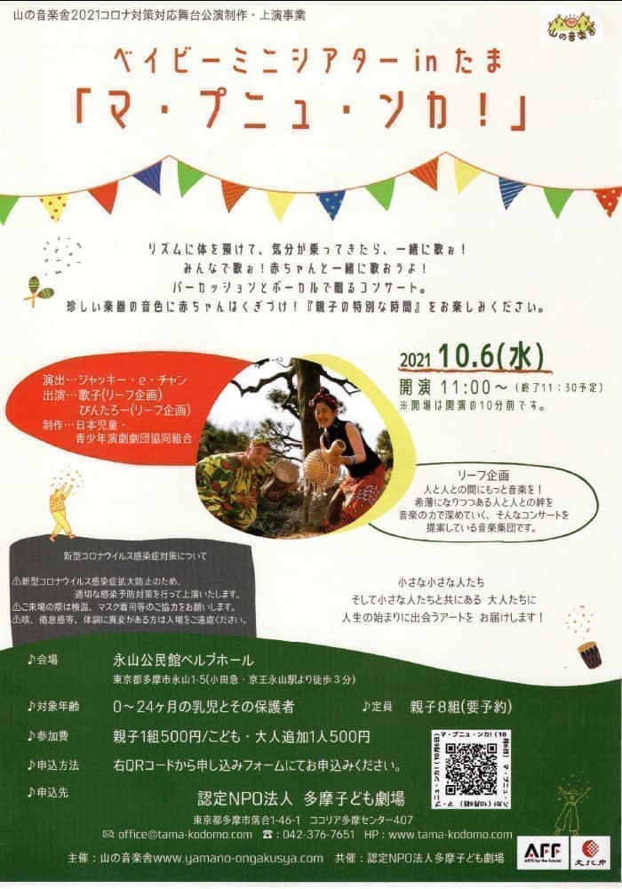 プロのアーチストのパフォーマンスを、赤ちゃんとママ・パパが安心して過ごせる空間で、さらに子育てを相談できる親同士の仲間作りなどを視野においた、充実した時間を過ごせる様に配慮した公演の実施を目指しています。